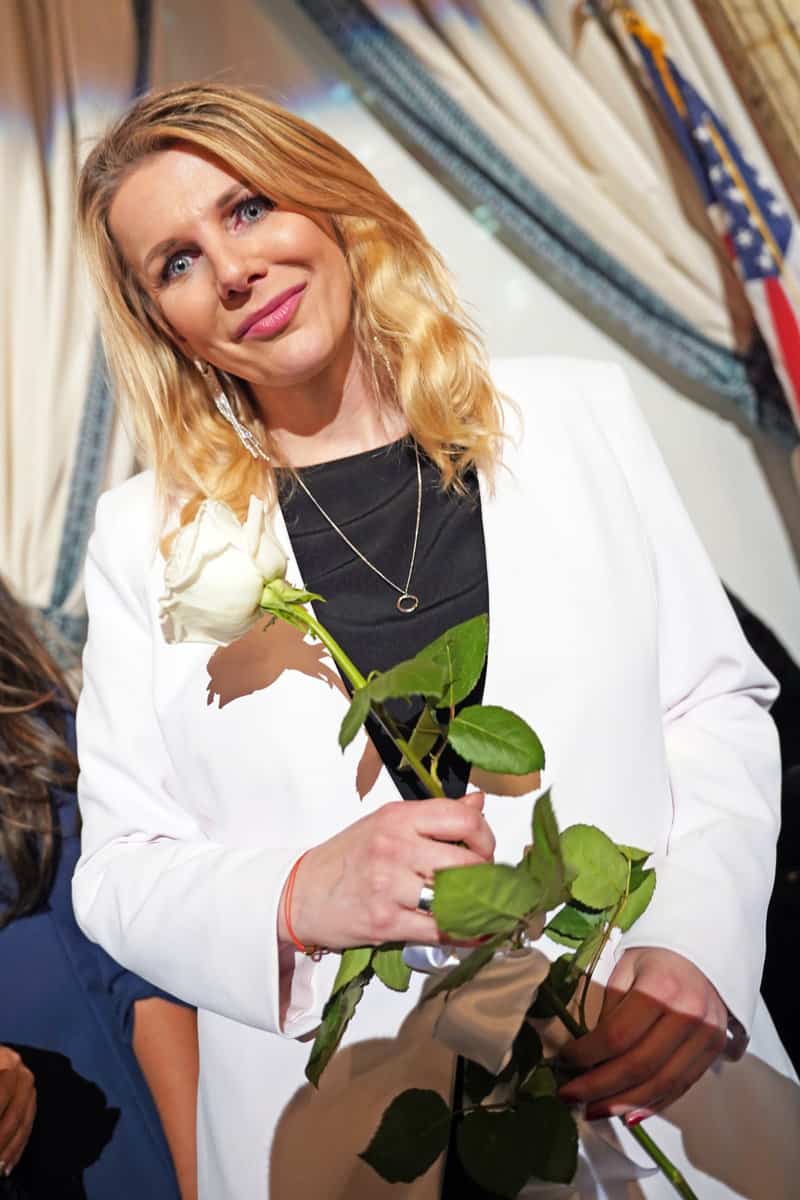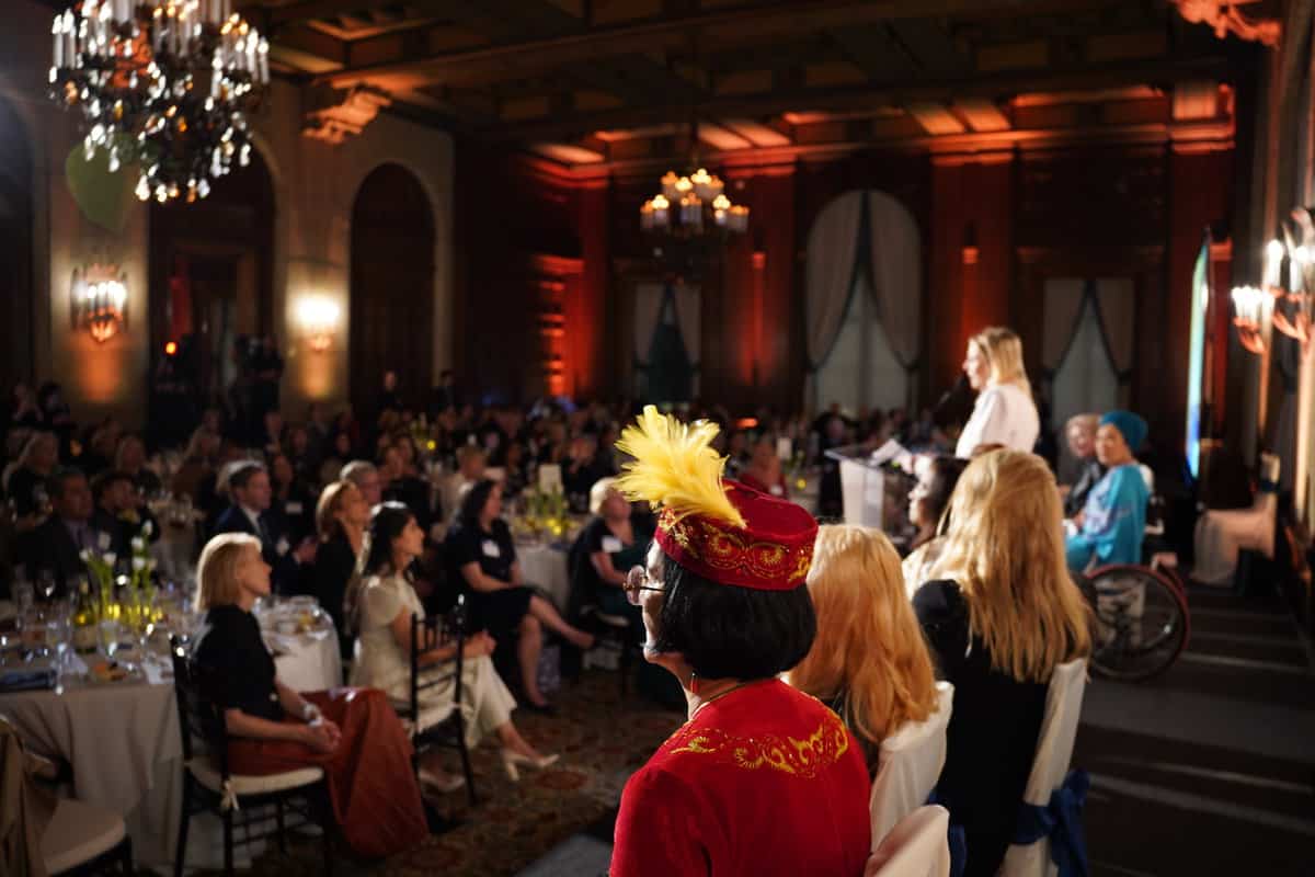 While she could not attend the event, world-renowned journalist and Honorary Committee Chair Andrea Mitchell welcomed the IWOCs on video, recalling when she was in Beijing in 1995 with then-First Lady Hilary Clinton, who declared, “Women’s rights are human rights and human rights are women’s rights.“ The Jonathan Club dining room erupted in cheers and a standing ovation, the first of many that night.