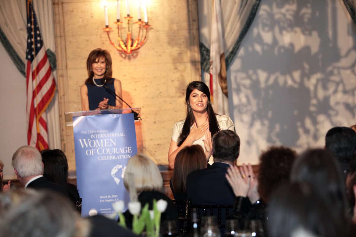 March 16th was an evening dedicated to celebrating the collective power of women’s voices. From start to finish, the 16th Annual International Women of Courage Celebrationwas energized by stories of women who have made it their goal to counter inhumanity, injustice and violence with determination and selflessness. In the audience of 250 were nine of the 11 2023 IWOCs, two 2015 IWOCs, U.S. Department of State officials, female executives from sponsoring companies, and AWIU leaders, members and guests, all there to honor the IWOCs who are making the world a better place.