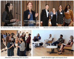 Speakers included Dr. Aubrey Paris, Sr. Policy Advisor on Gender, Climate Change & Innovation at the U.S. State Department, Dr. Joanne Hill-Kittle, Deputy Director for NASA Goddard’s Engineering and Technology Directorate, as well as representatives from Deloitte, Intel, the Brookings Institution, the Space Foundation and Catholic University. Break-out sessions addressed Health Breakthroughs and Inequity, Women in Artificial Intelligence and Cybersecurity, and Strategies to Open Opportunities in STEM-Related Careers. We also had recruiters from a number of local organizations and universities including Fulbright, Peace Corps, USAID, EnCompass LLC, IES Abroad, Council on Foreign Relations, Georgetown University, and American University. The event drew a total of 95 attendees representing 24 schools!